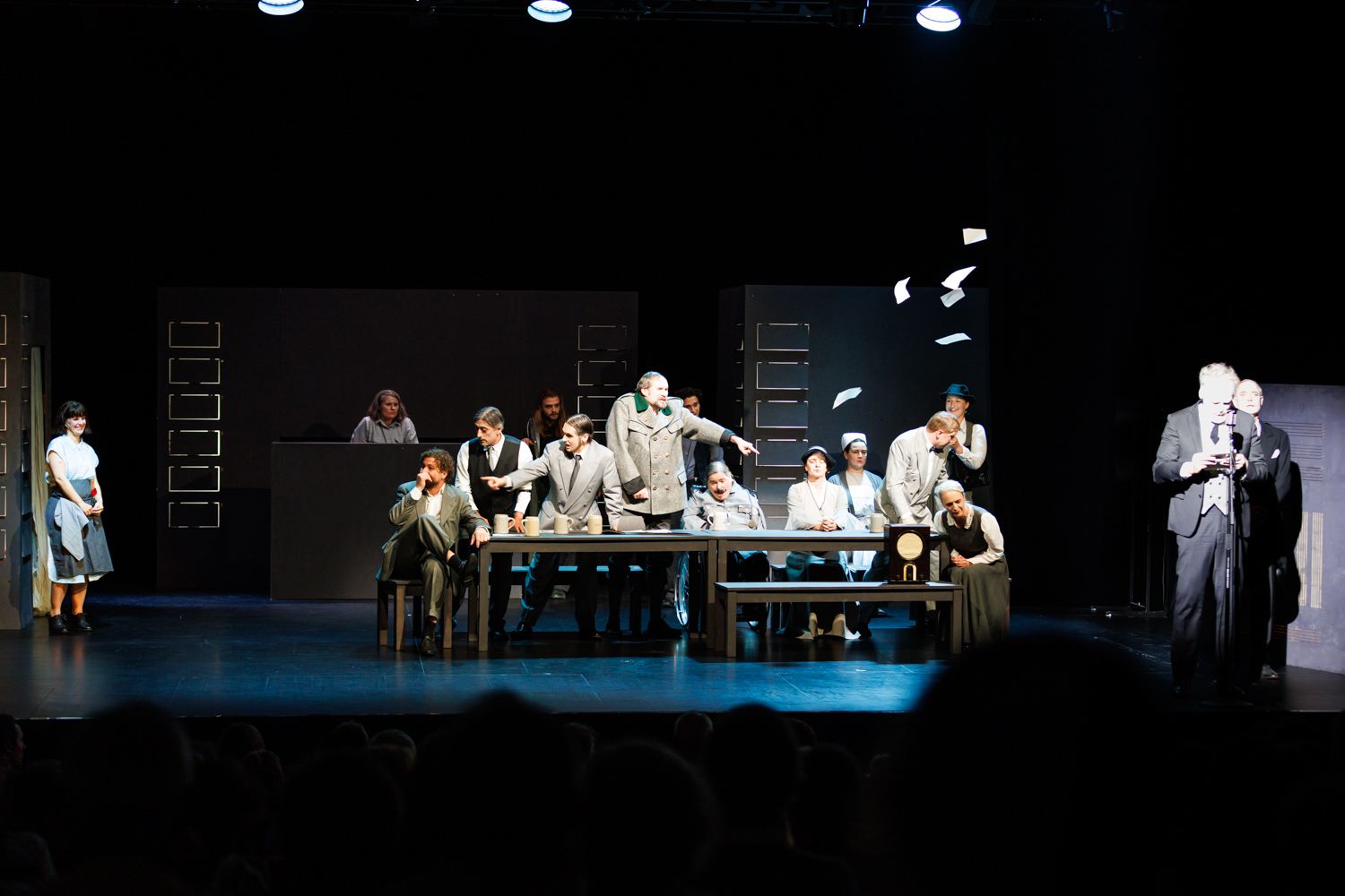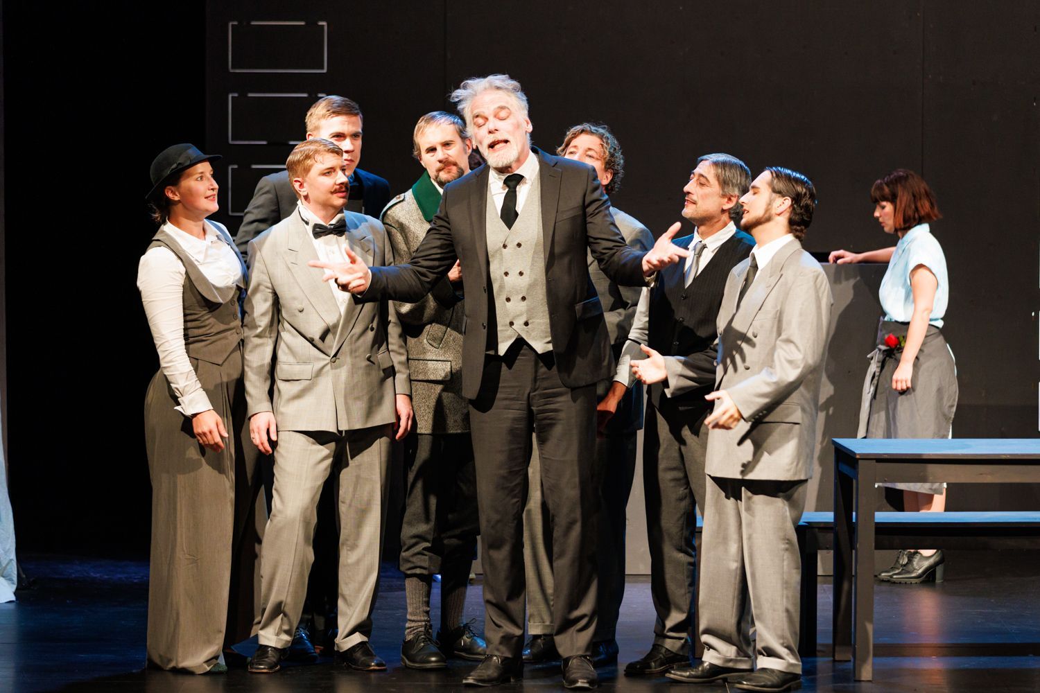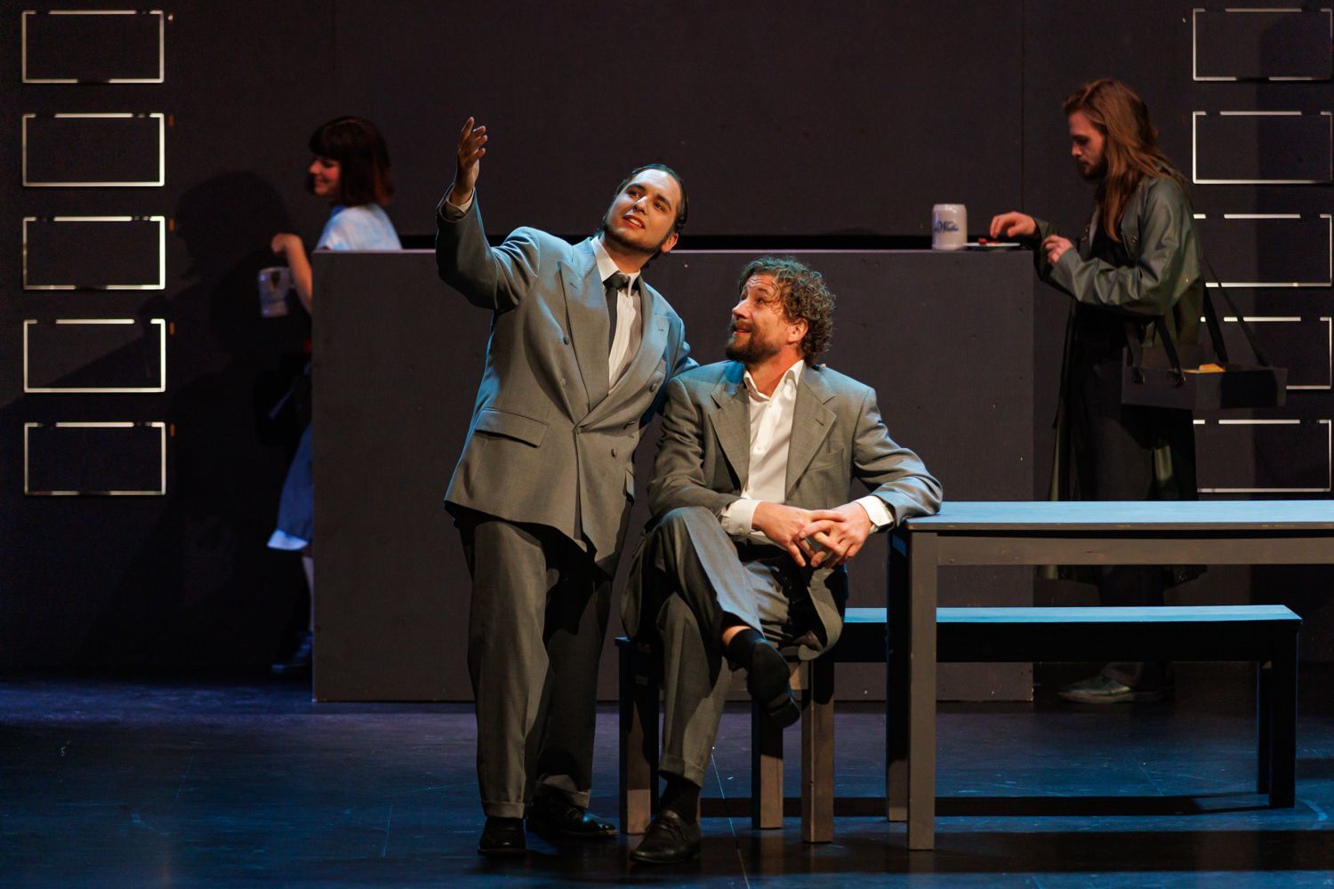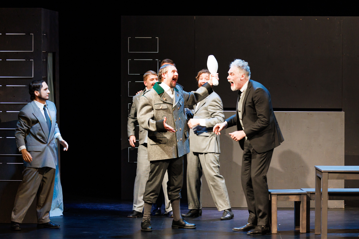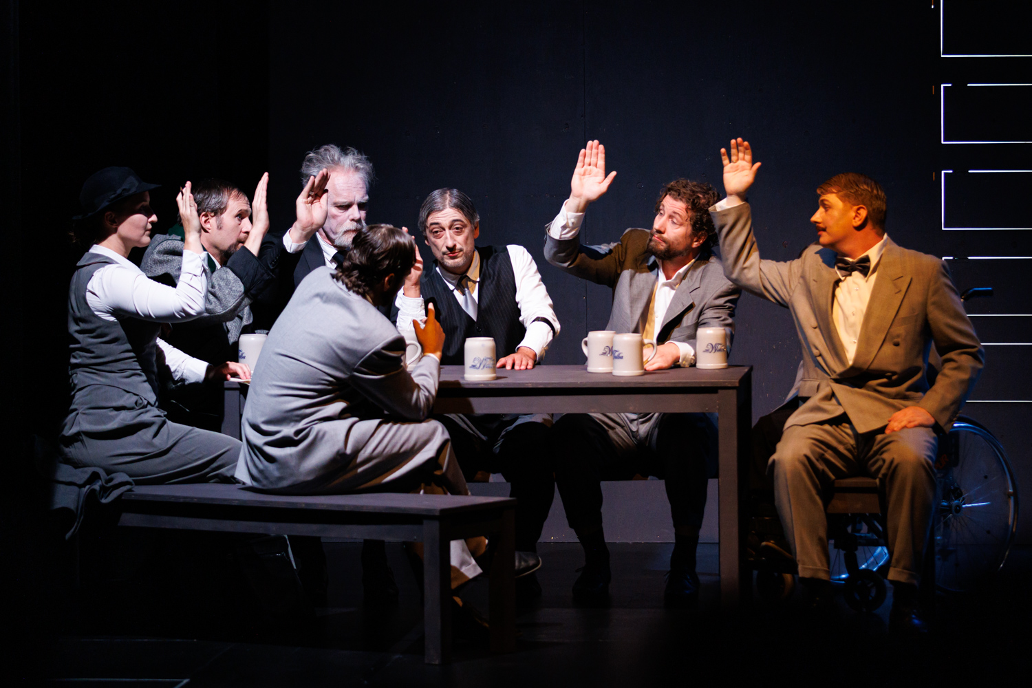 Die skurrilen Gestalten im Automatenbüfett entpuppen sich so mit viel Witz und hintergründigem Humor als Vertreter einer Gesellschaft am Scheideweg.