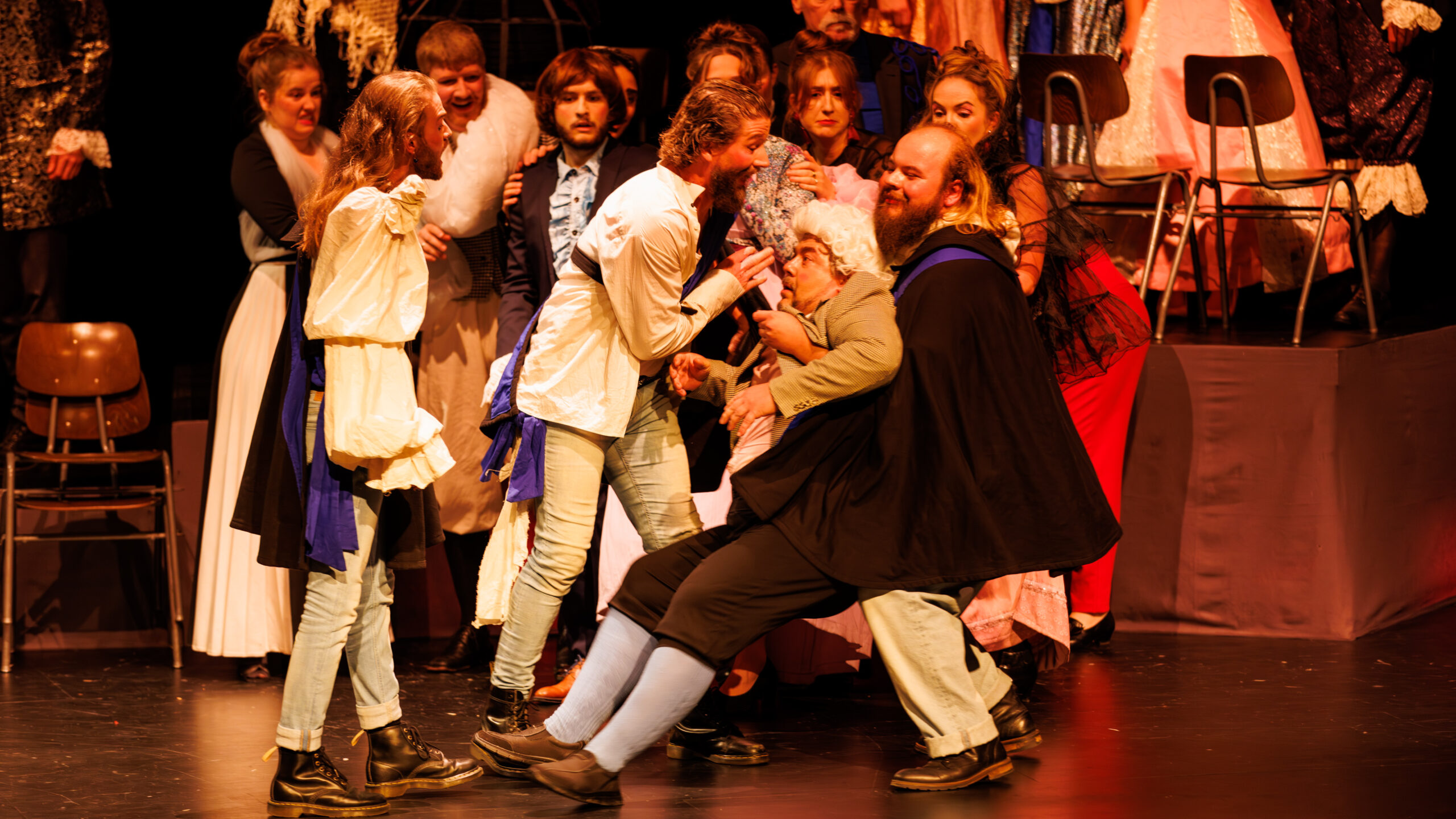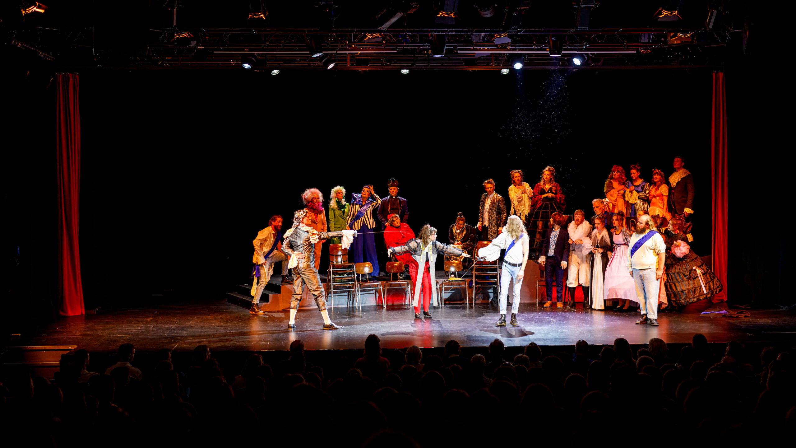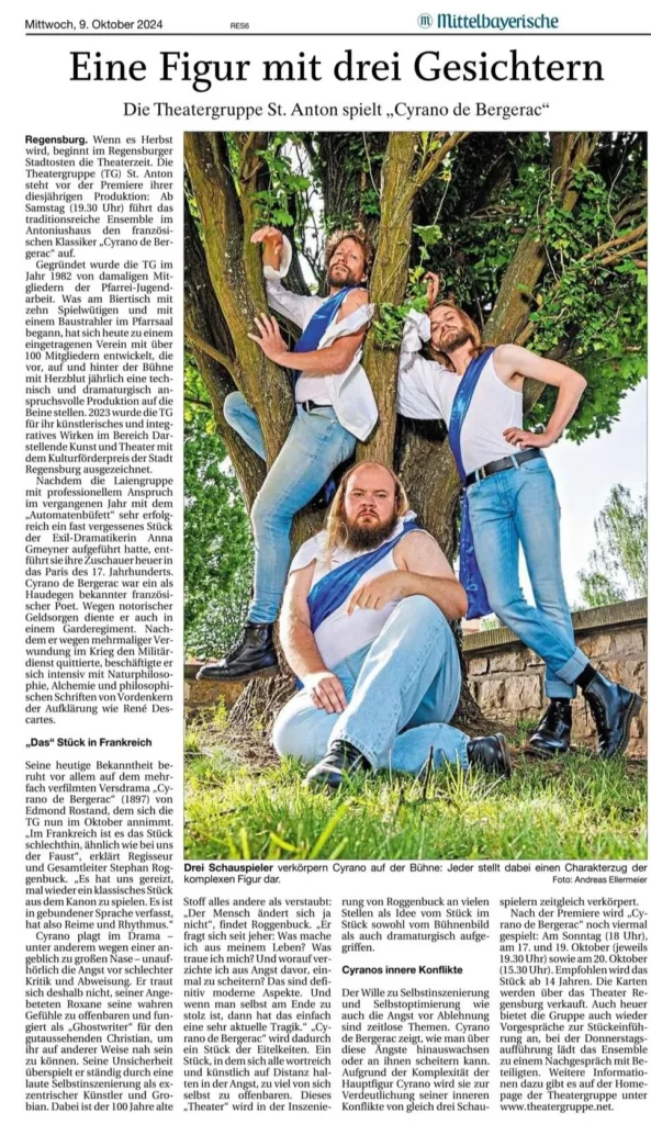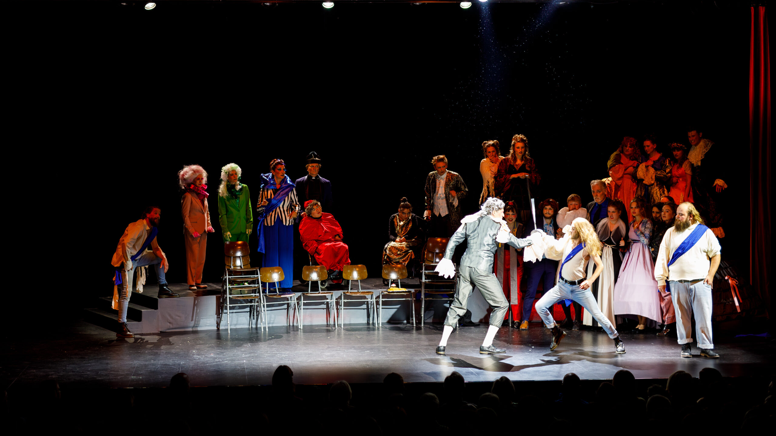 Cyrano de Bergerac ist ein Stück der Eitelkeiten. Ein Stück, in dem sich alle wortreich und künstlich auf Distanz halten in der Angst, zu viel von sich selbst zu offenbaren. Dieses „Theater“ wird in der Inszenierung von Stephan Roggenbuck an vielen Stellen als Idee vom Stück im Stück sowohl vom Bühnenbild als auch dramaturgisch aufgegriffen. Der Wille zu Selbstinszenierung und Selbstoptimierung wie auch die Angst vor Ablehnung sind zeitlose Themen. Cyrano de Bergerac zeigt, wie man über diese Ängste hinauswachsen oder an ihnen scheitern kann.