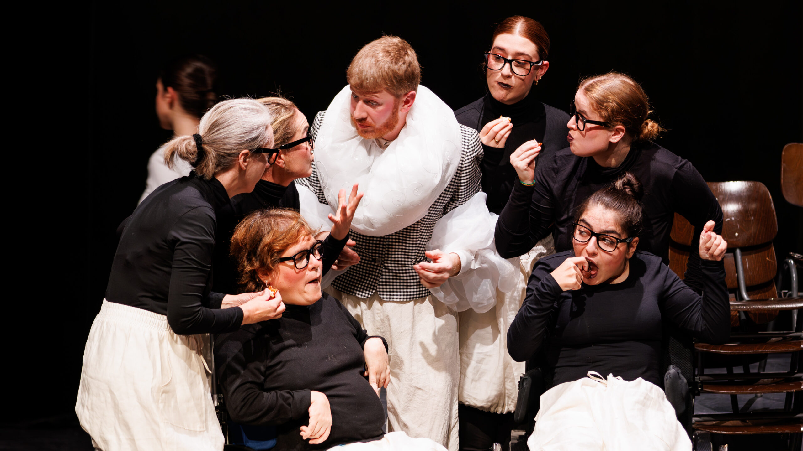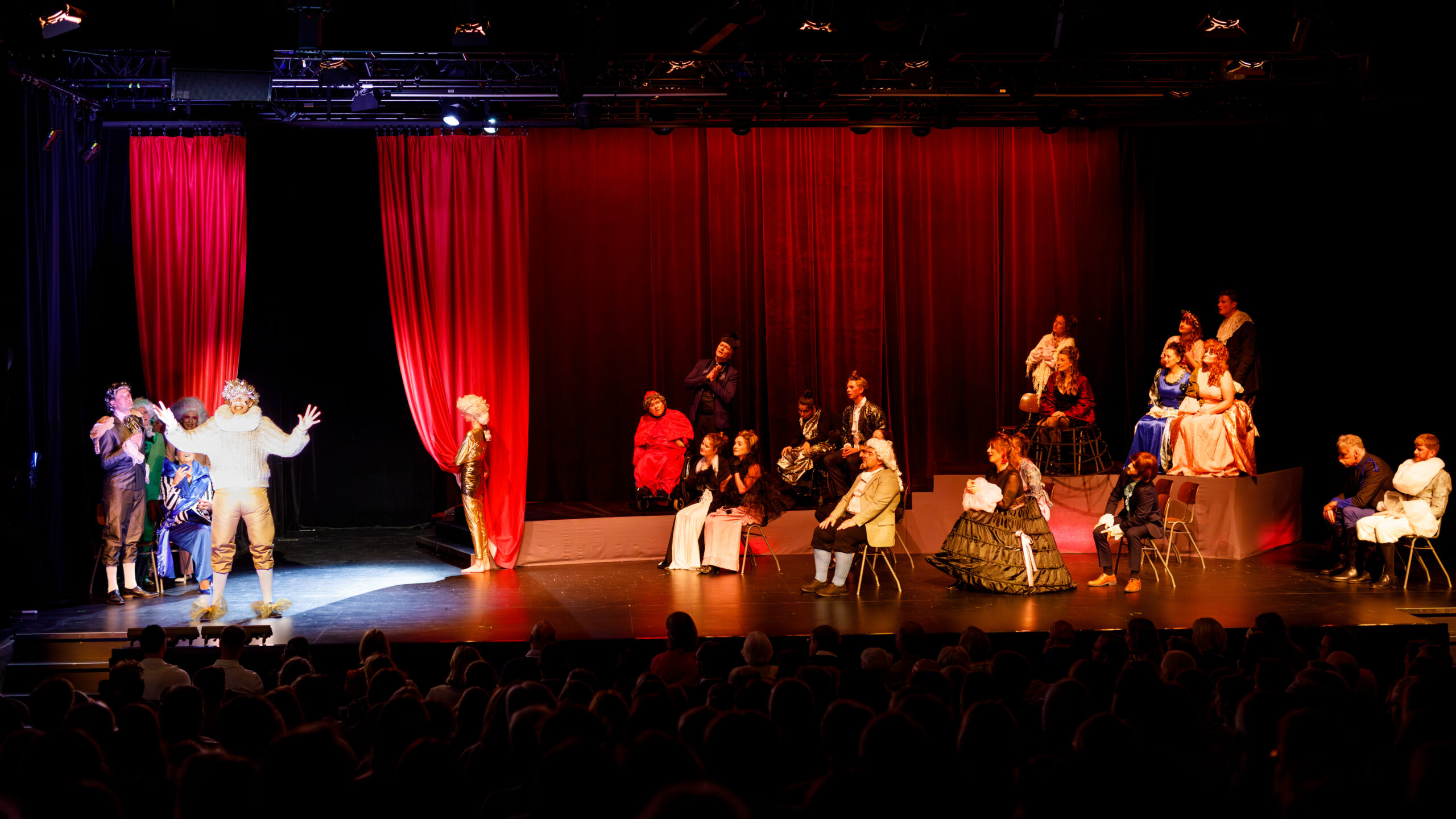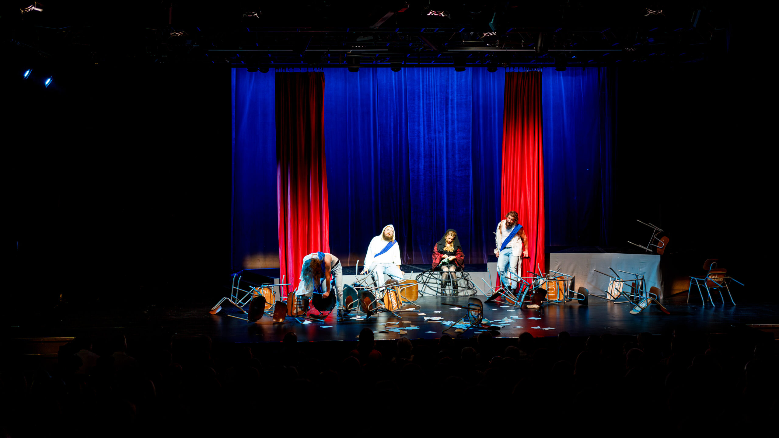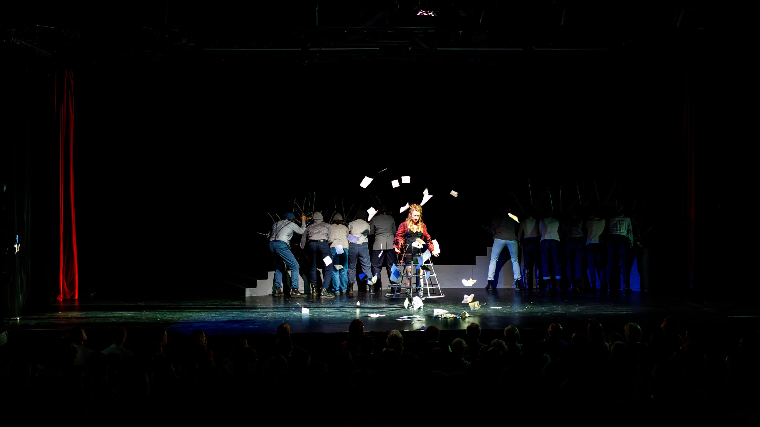 Cyrano de Bergerac ist ein Stück der Eitelkeiten. Ein Stück, in dem sich alle wortreich und künstlich auf Distanz halten in der Angst, zu viel von sich selbst zu offenbaren. Dieses „Theater“ wird in der Inszenierung von Stephan Roggenbuck an vielen Stellen als Idee vom Stück im Stück sowohl vom Bühnenbild als auch dramaturgisch aufgegriffen. Der Wille zu Selbstinszenierung und Selbstoptimierung wie auch die Angst vor Ablehnung sind zeitlose Themen. Cyrano de Bergerac zeigt, wie man über diese Ängste hinauswachsen oder an ihnen scheitern kann.