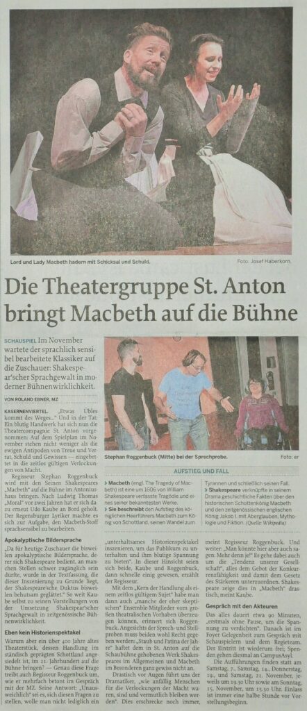 Die Geschichte des schottischen Generals, vom ergebenen Soldaten zum skrupellosen Mörder und Tyrannen, ist ein zeitloses Spiel, vielleicht aktueller denn je.