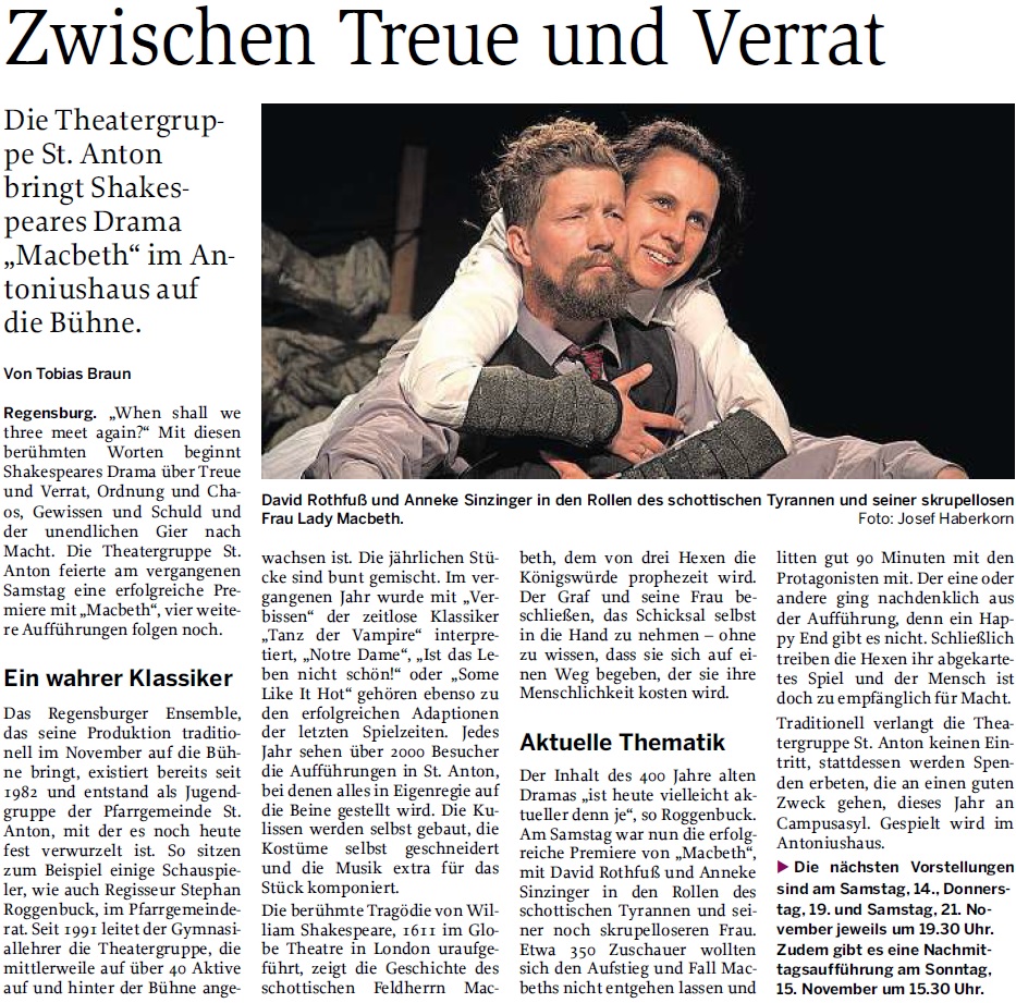 Vorankündigung in der Mittelbayerische Zeitung vom 05. November 2015
